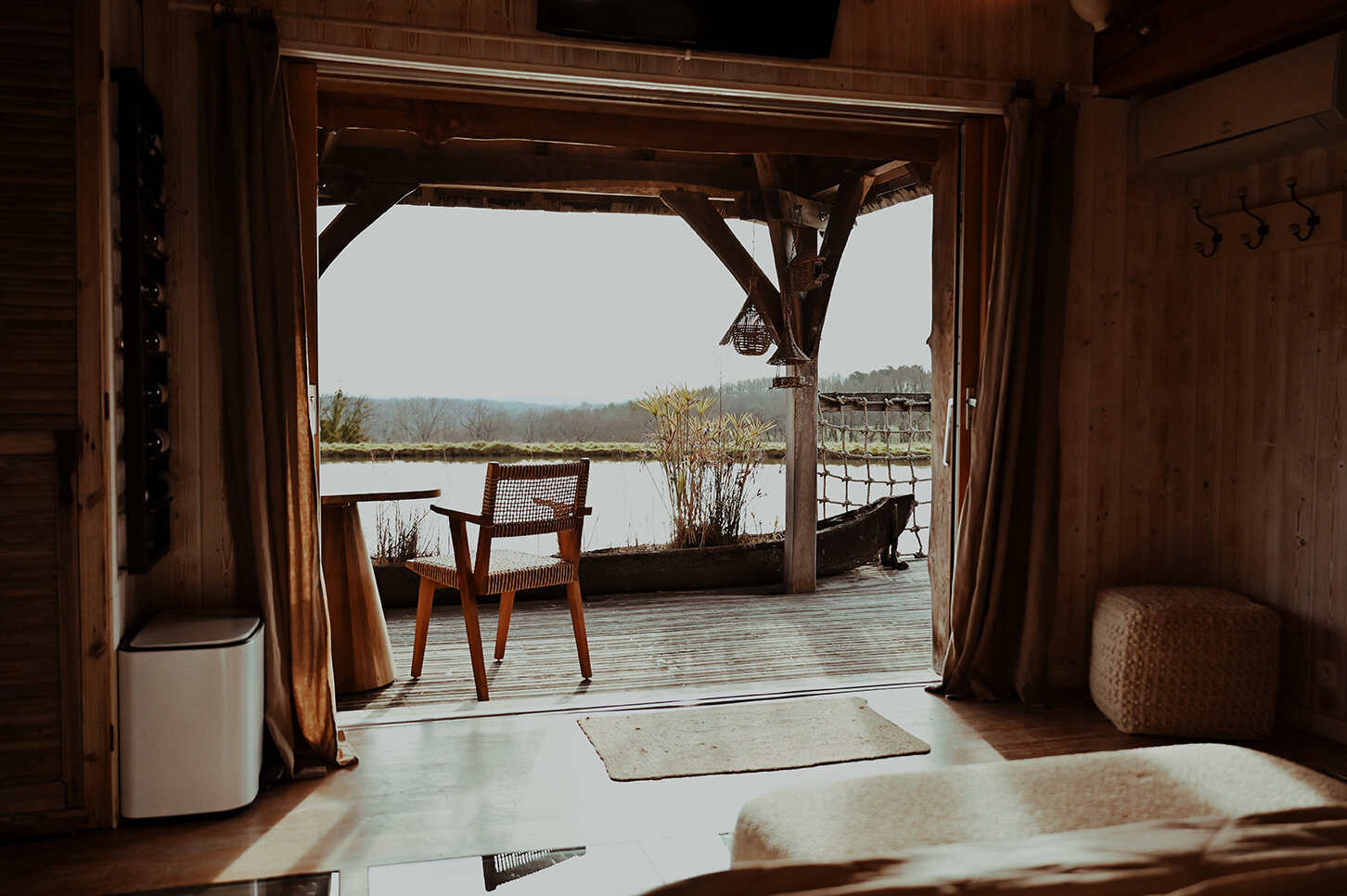 Profitez d'un séjour de relaxation absolue dans la cabane flottante Biron avec sa vue et son SPA privatif...