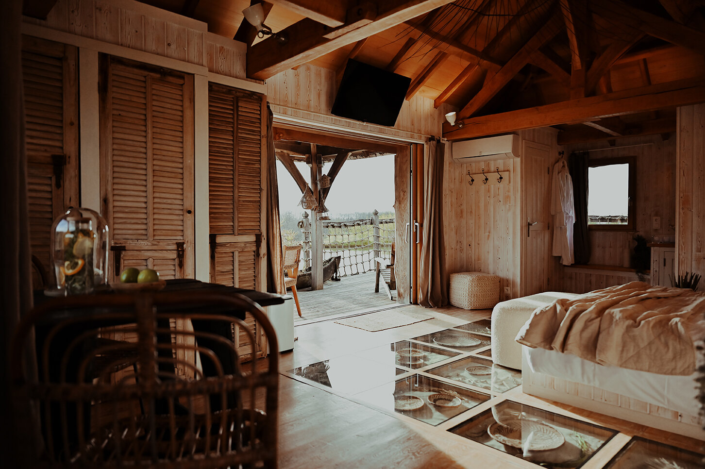 La cabane flottante Biron vous invite à une expérience inoubliable au cœur de la nature. Accessible par un chemin ludique qui serpente entre les bassins de promenade et l'arborescence, cette cabane flottante sur l'eau vous offre un séjour insolite dans un cadre naturel exceptionnel.
