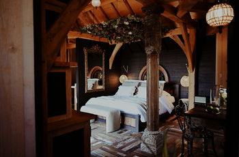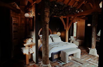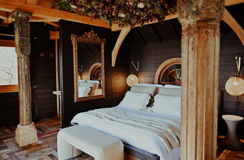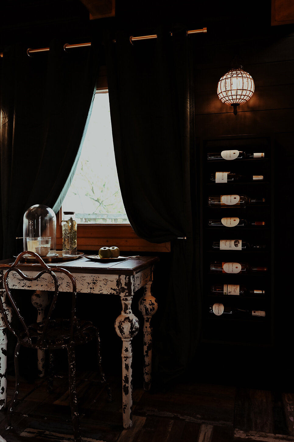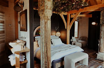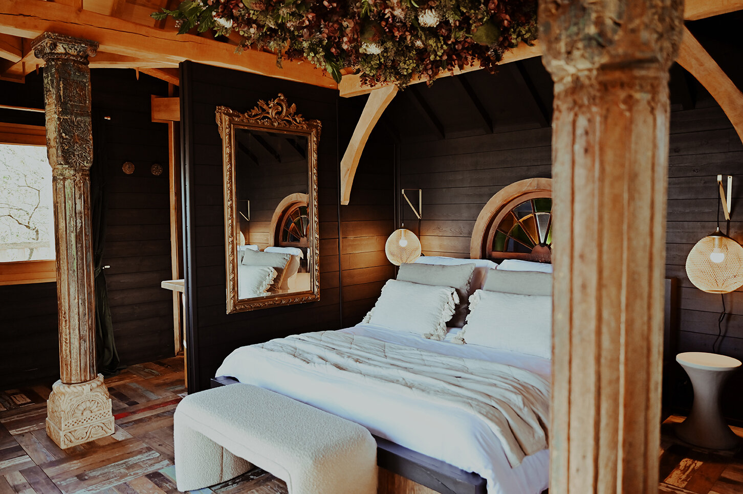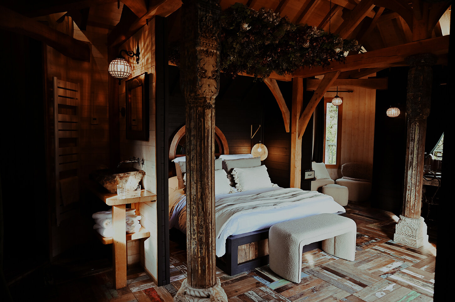 L'intérieur cosy et romantique de la cabane vous plongera dans une atmosphère intime et nature. Chaque détail a été pensé pour créer une ambiance chaleureuse et unique, idéale pour un séjour romantique à deux.