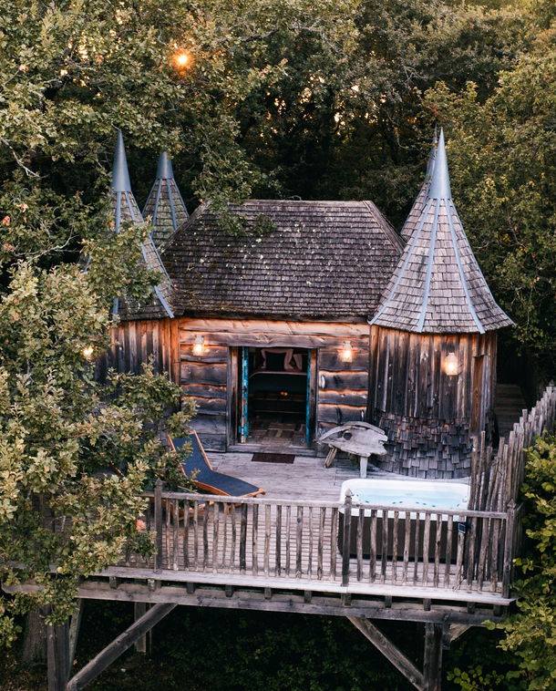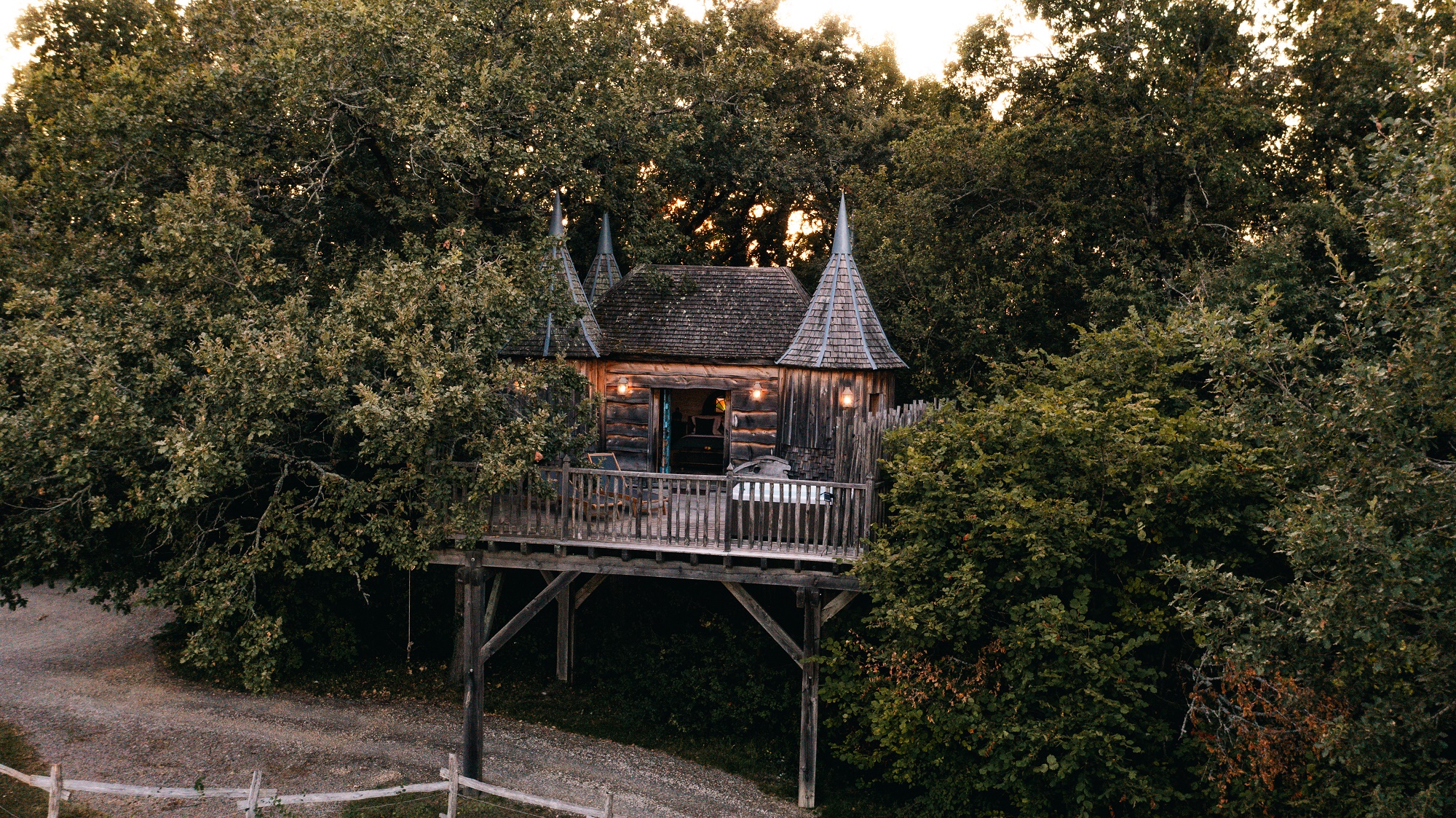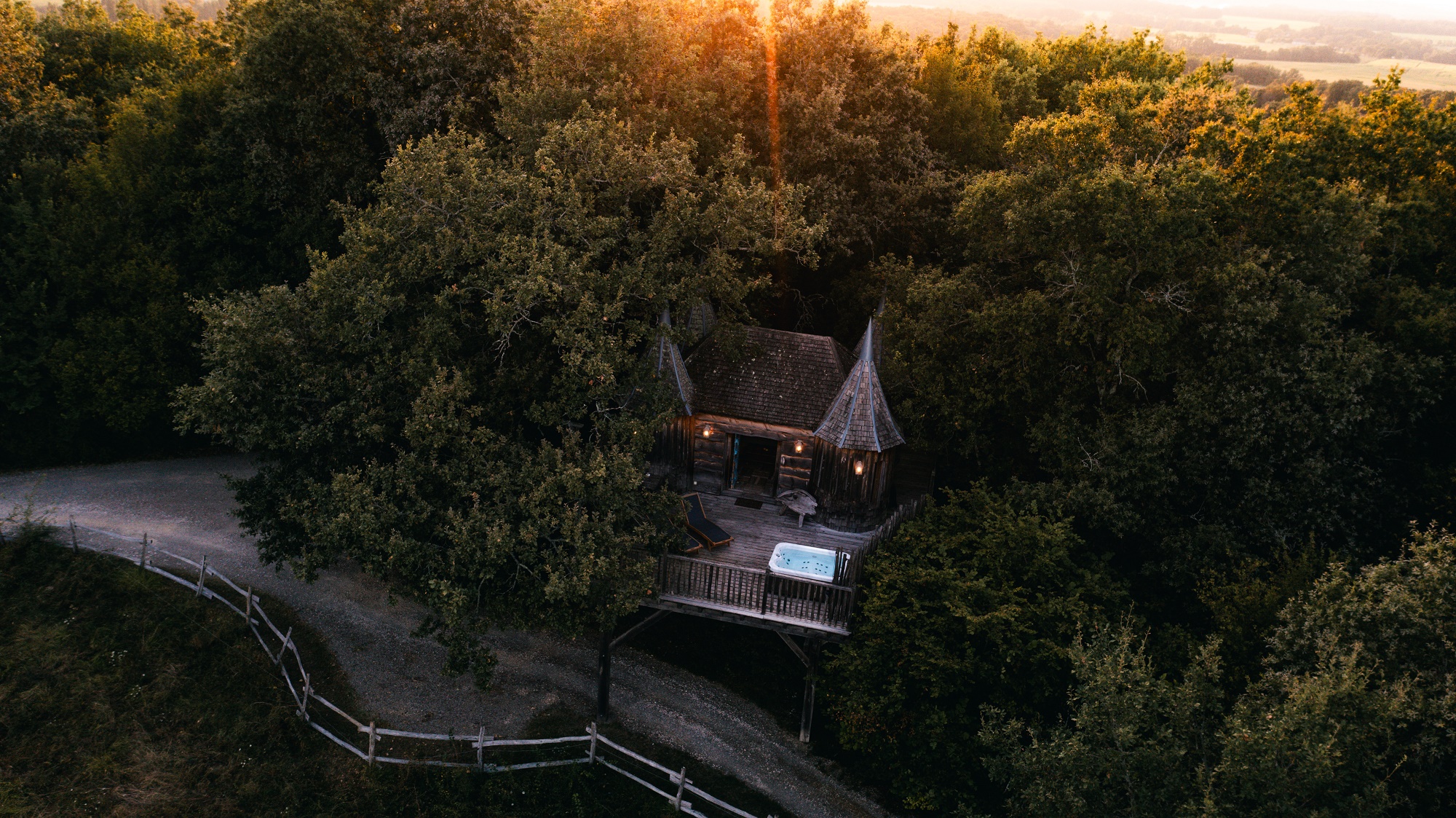 Perchée en lisière de forêt, la cabane Monbazillac se fond harmonieusement dans le paysage, dominant le parc et offrant une vue imprenable sur le véritable Château de Biron. Véritable havre de paix, cette cabane perchée avec spa privatif vous invite à un séjour unique en pleine nature.